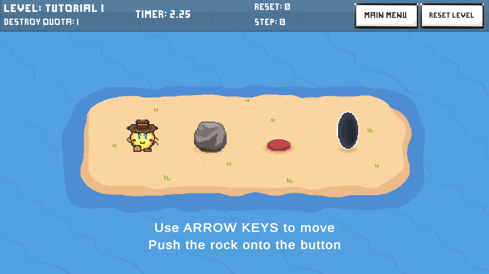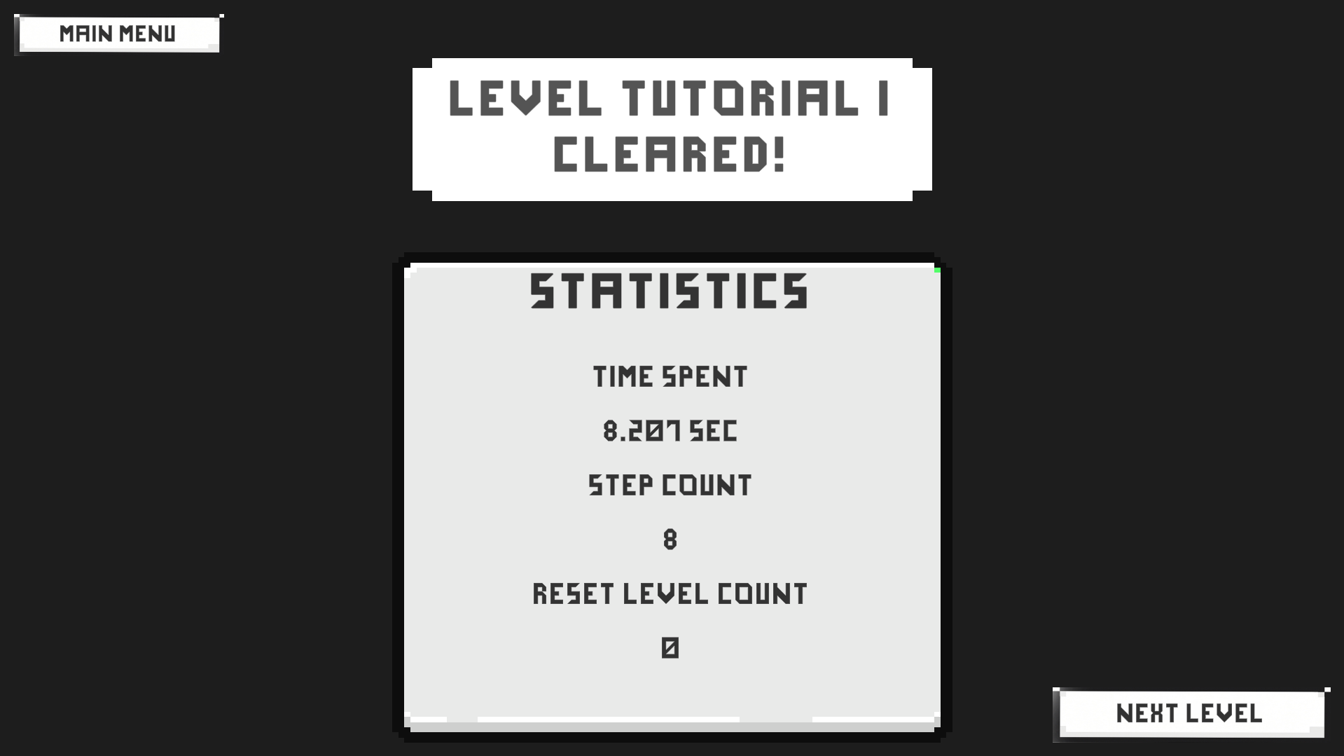 - After solved the level, player can see the statistics. For now, we only include time spent, step counter, and reset level counter